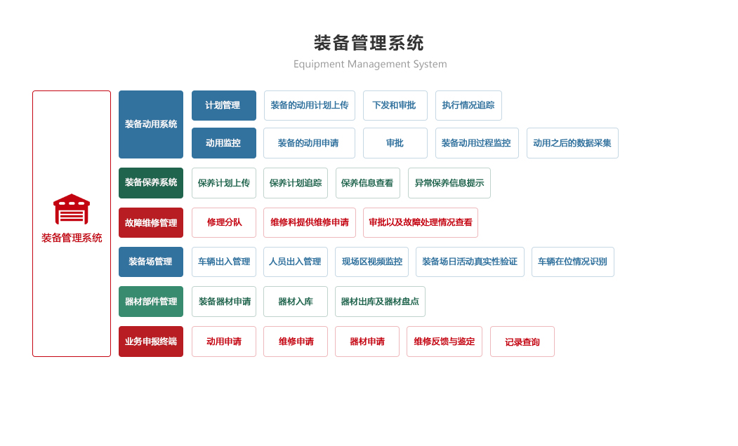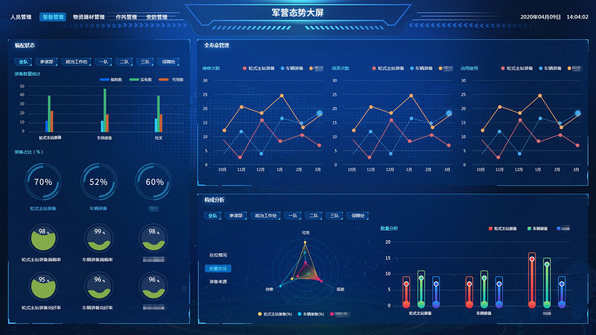 綜合保障系統(tǒng)依托物聯(lián)網(wǎng)、RFID識別和傳感技術(shù),著眼作戰(zhàn)精準(zhǔn)保障、戰(zhàn)備常態(tài)保障和官兵生活保障,對戰(zhàn)備物資、裝備器材、營房物資和被裝物資等的全生命周期的電子化管理,對官兵的健康實時監(jiān)護(hù)。包含財務(wù)管理、軍需油運、武器裝備、衛(wèi)勤管理、營房管理模塊。確保部隊出動,車輛給養(yǎng)油料跟得上,裝備維護(hù)情況實時掌握,營房管理工作平時與戰(zhàn)備同步推進(jìn)。