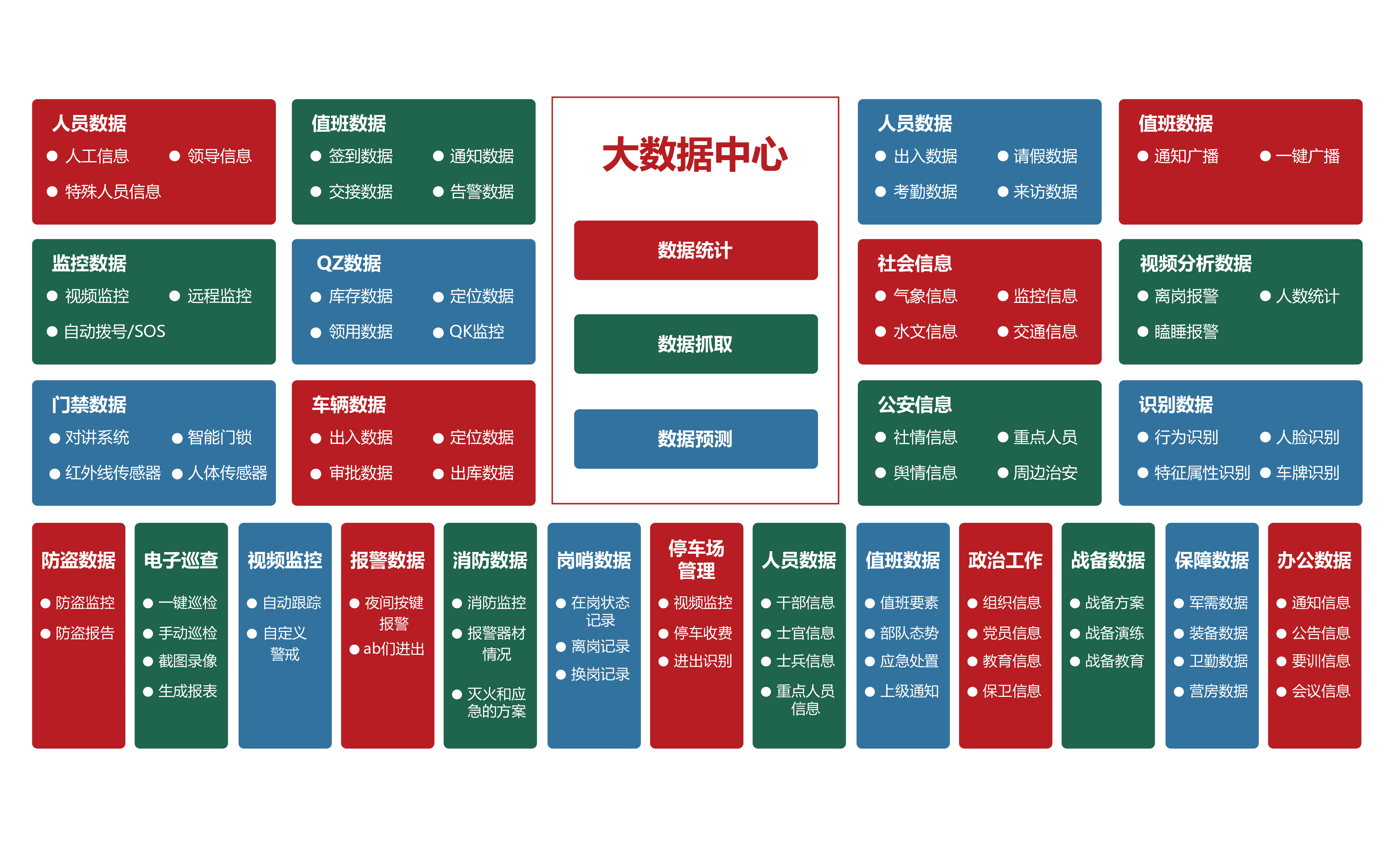 部隊管理系統(tǒng)基于對營區(qū)內(nèi)人、車、dy、崗哨等建設(shè)要求,結(jié)合軍隊自身特點及應(yīng)用現(xiàn)狀,實現(xiàn)網(wǎng)絡(luò)化管理,提高人、車等管理的效率。可以提高響應(yīng)能力,構(gòu)建人、車、q、d、密的全方位綜合管理的部隊系統(tǒng),保障整體系統(tǒng)高效、穩(wěn)定、安全運行,提升部隊全面信息化建設(shè)層次